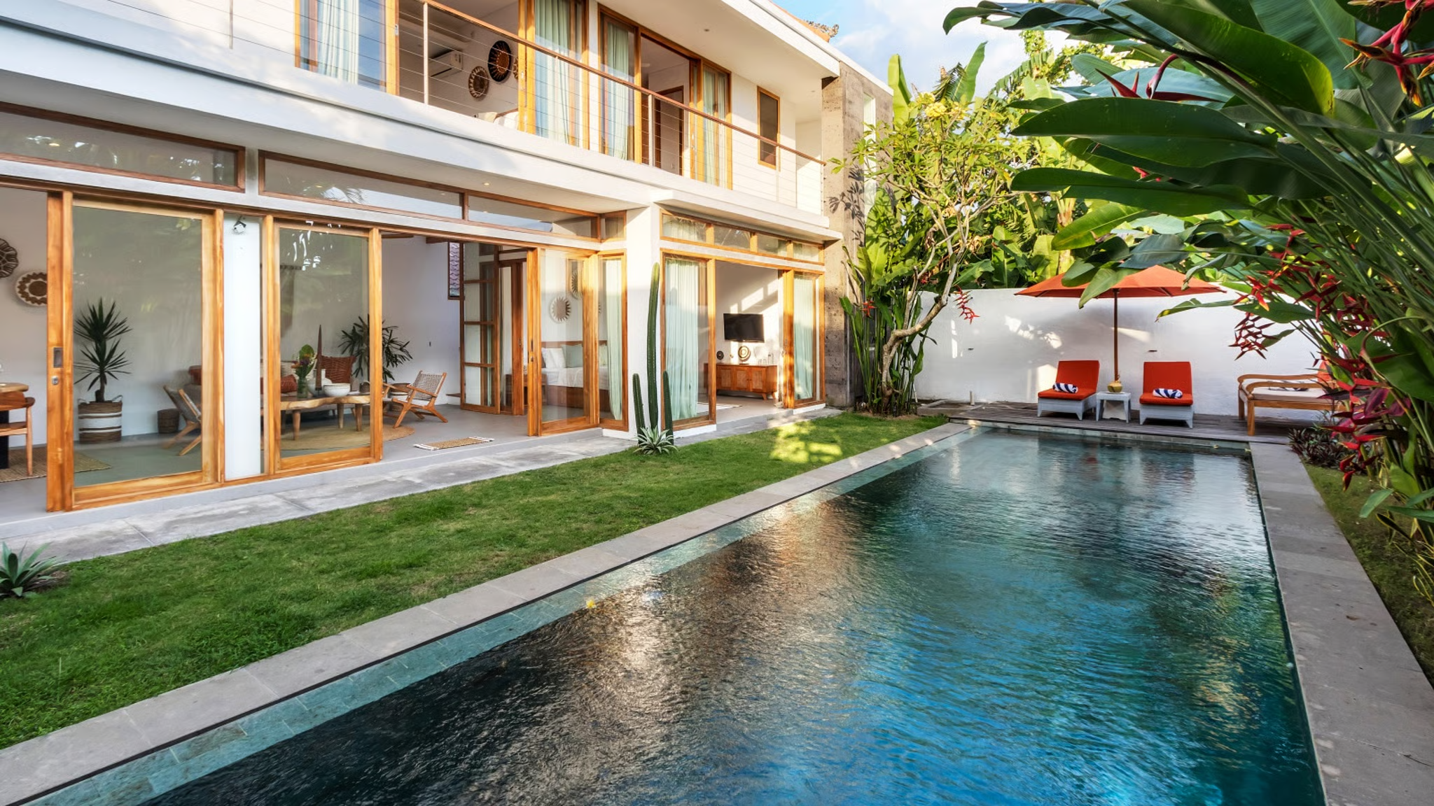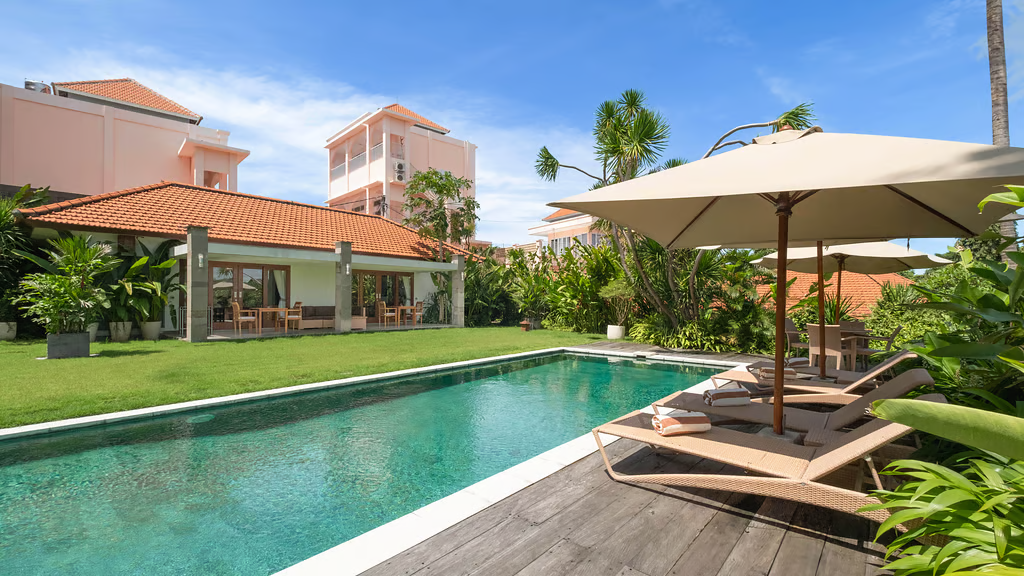 Cette villa de 400 m² est une escapade chic et paisible, située à seulement 150 mètres de la plage. Conçue pour allier confort et style, elle dispose de quatre chambres et offre un cadre idéal pour les familles ou les groupes d’amis en quête d’un séjour relaxant, à proximité des meilleures adresses de Berawa.