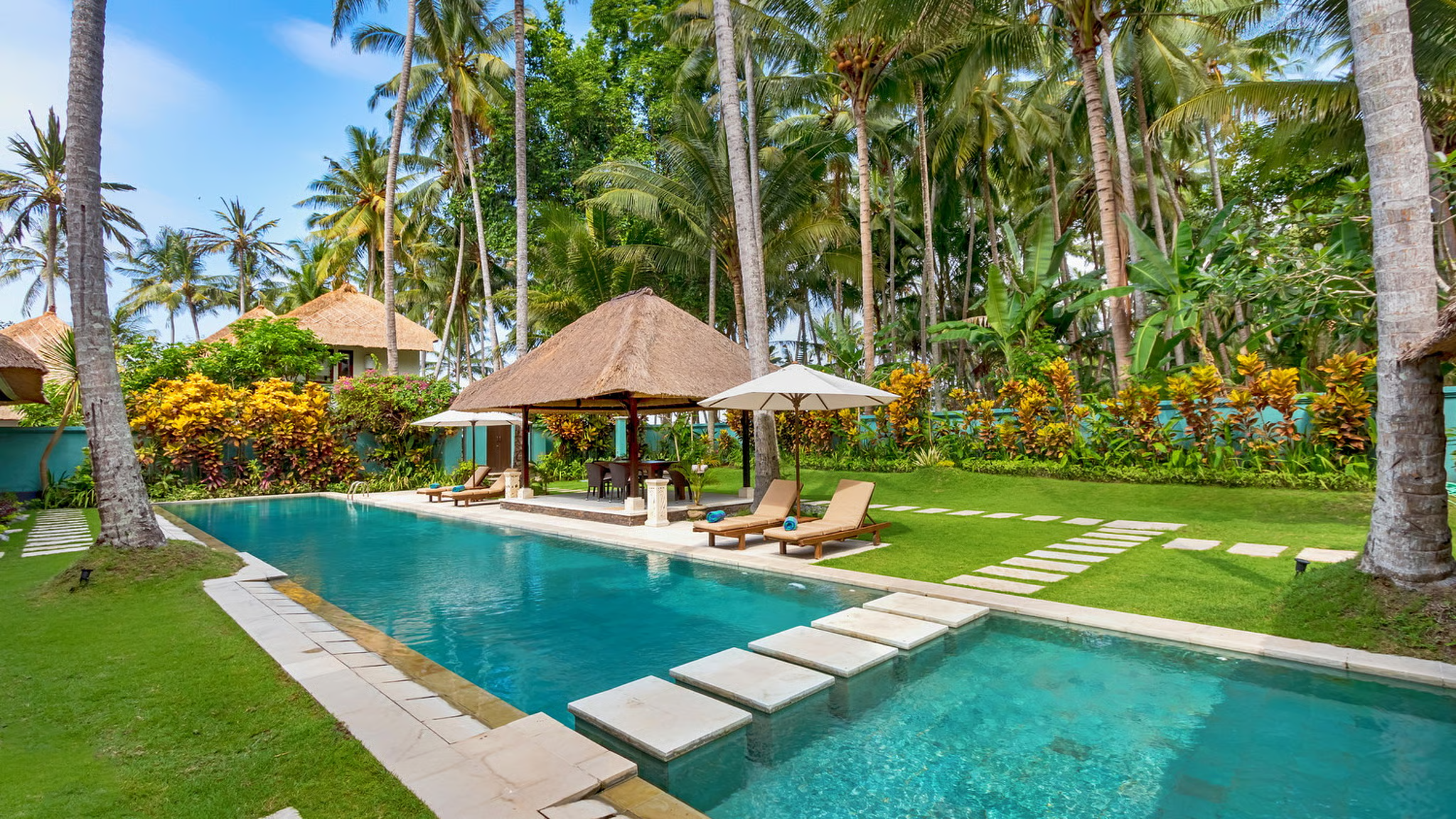 Cette villa est une maison balinaise traditionnelle composée de cinq pavillons abritant les cinq chambres, les espaces de vie et les salles à manger. L’aménagement paysager extérieur met en valeur la beauté naturelle de l’environnement. La piscine d’eau salée de 12 mètres est l’endroit idéal pour se détendre, et vous avez le luxe de pouvoir profiter de séances privées de yoga dans le studio dédié.